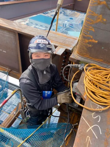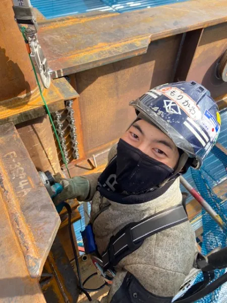 僕はこの仕事を始めて3年がたちますが、率直に奥が深いと思います。 深すぎるぐらい覚える事が沢山あって、正直挫けそうになる時もありましたが、建物がどんどん建っていく姿を見ていたら、自分達のやった仕事が目に見えて進んでいく事に強い達成感を憶えたり、感動するので、凄くやり甲斐のある仕事だと思いました! 僕はまだまだ先輩達みたいに何でも対応したり、職長として鉄骨工事を任せられるまでにはなっていませんが、ゆくゆくは先輩達みたいな一人前の職人になりたいなと思い、日々努力しています!